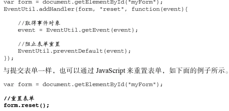 reset()方法与submit()方法不同,调用reset()方法会像点击重置按钮一样触发reset事件