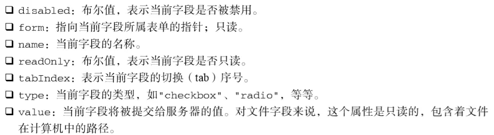共有的表单字段属性(除了fieldset元素)