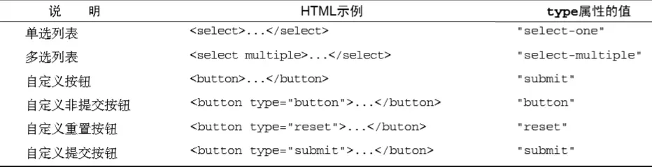 在 JavaScript中,可 以利用表单字段的 type 属性,连同 name 和 value 属性一起实现对表单的序列化