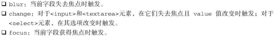 用户改变当前字段的焦点,或者调用blur()或focus()方法时,都可以触发blur和focus事件