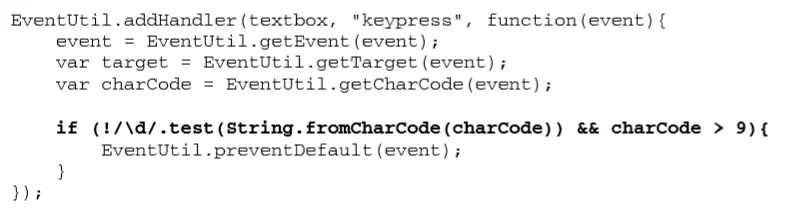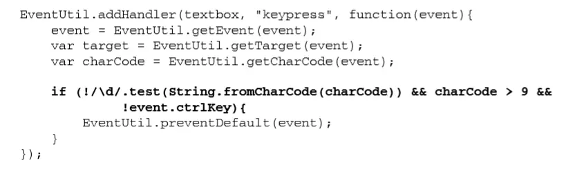 响应向文本框中插入字符操作的是 keypress 事件,可以通过阻止这个事件的默认行为来屏蔽此类字符