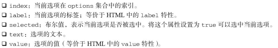 在 DOM 中,每个<option>元素都有一个 HTMLOptionElement 对象表示