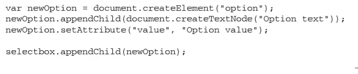 Option 构造函数接受两个参数:文本(text)和值(value);第二个参数可选。 虽然这个构造函数会创建一个 Object 的实例,但兼容 DOM的浏览器会返回一个<option>元素
