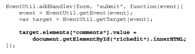 使用标准的DOM方法,不要使用 setAttribute()设置<input>元素的 value 特性,也不要去修改<textarea> 元素的第一个子节点(不建议)