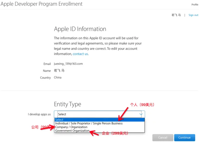 2、登录苹果开发者中心(developer.apple.com),开始注册开发者账号(https://developer.…
