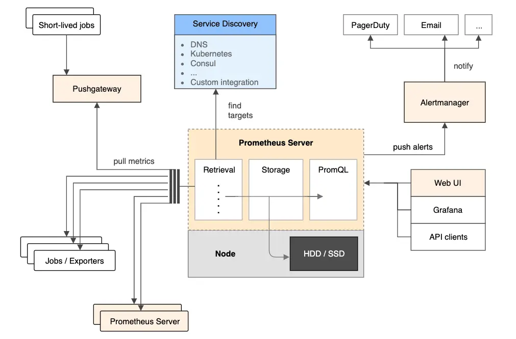 SoundCloud 公司博客上有一篇文章简单讲解了 Prometheus 架构以及工作原理。文章中认为 Prometheus 满足的四个特性: