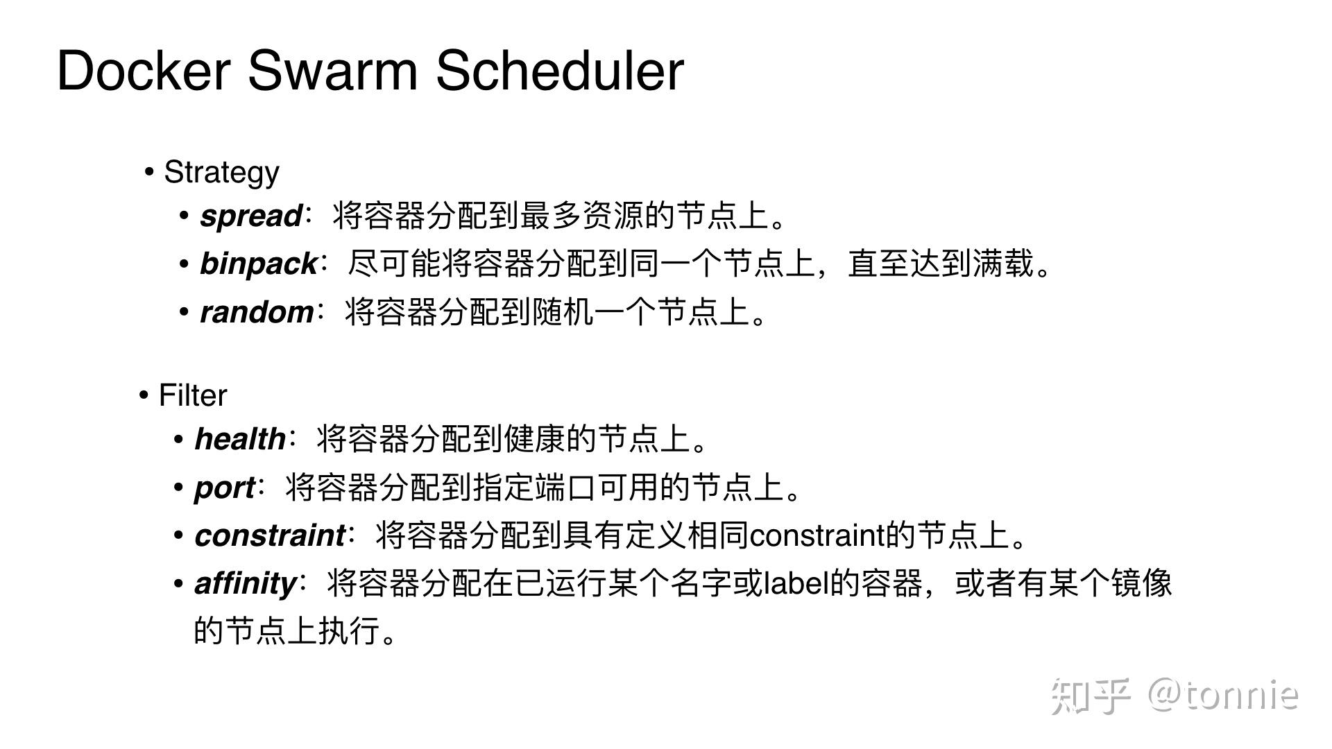 Docker Swarm提供了多种调度策略,来按需选择将容器分配到不同的节点上。