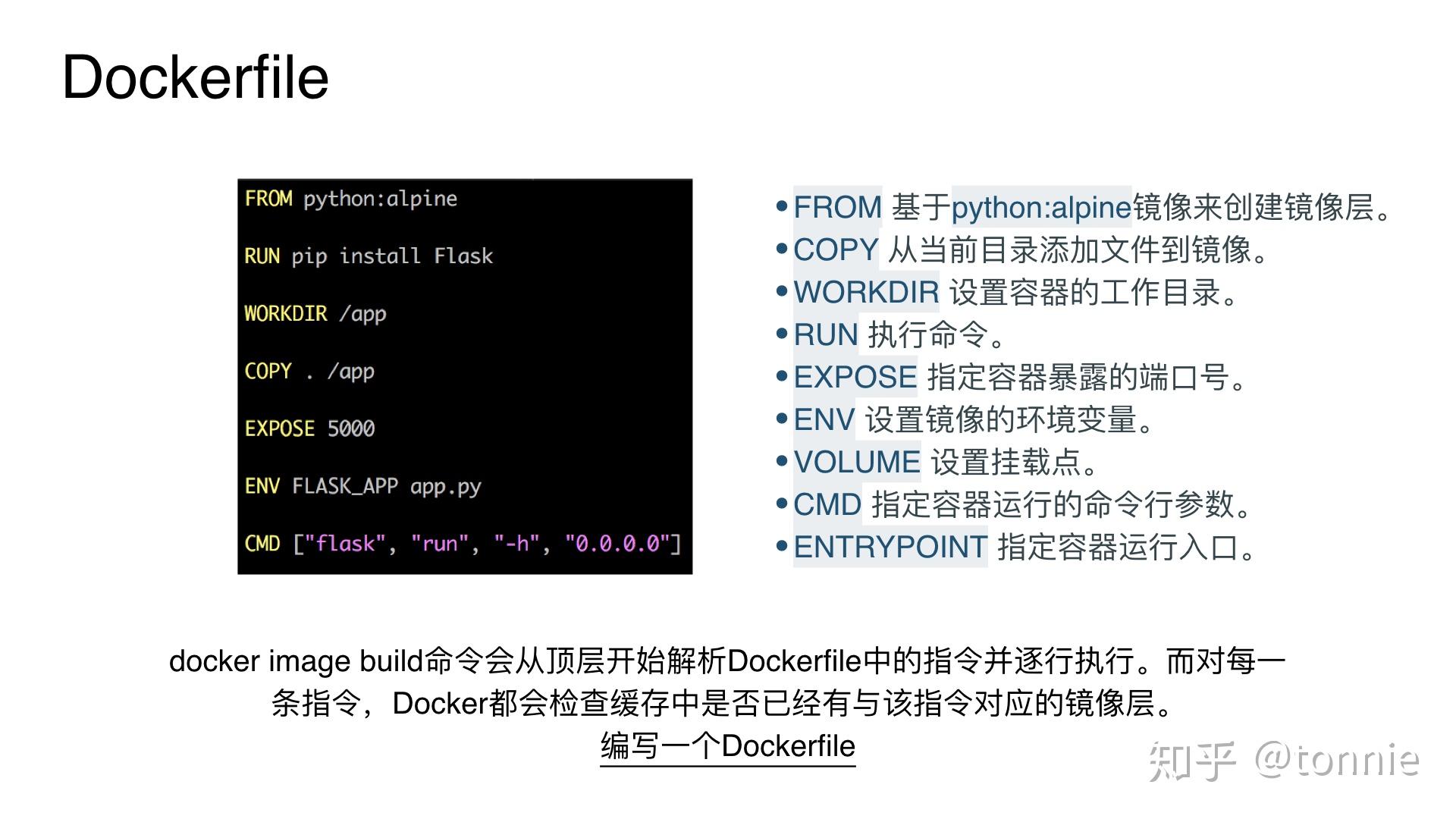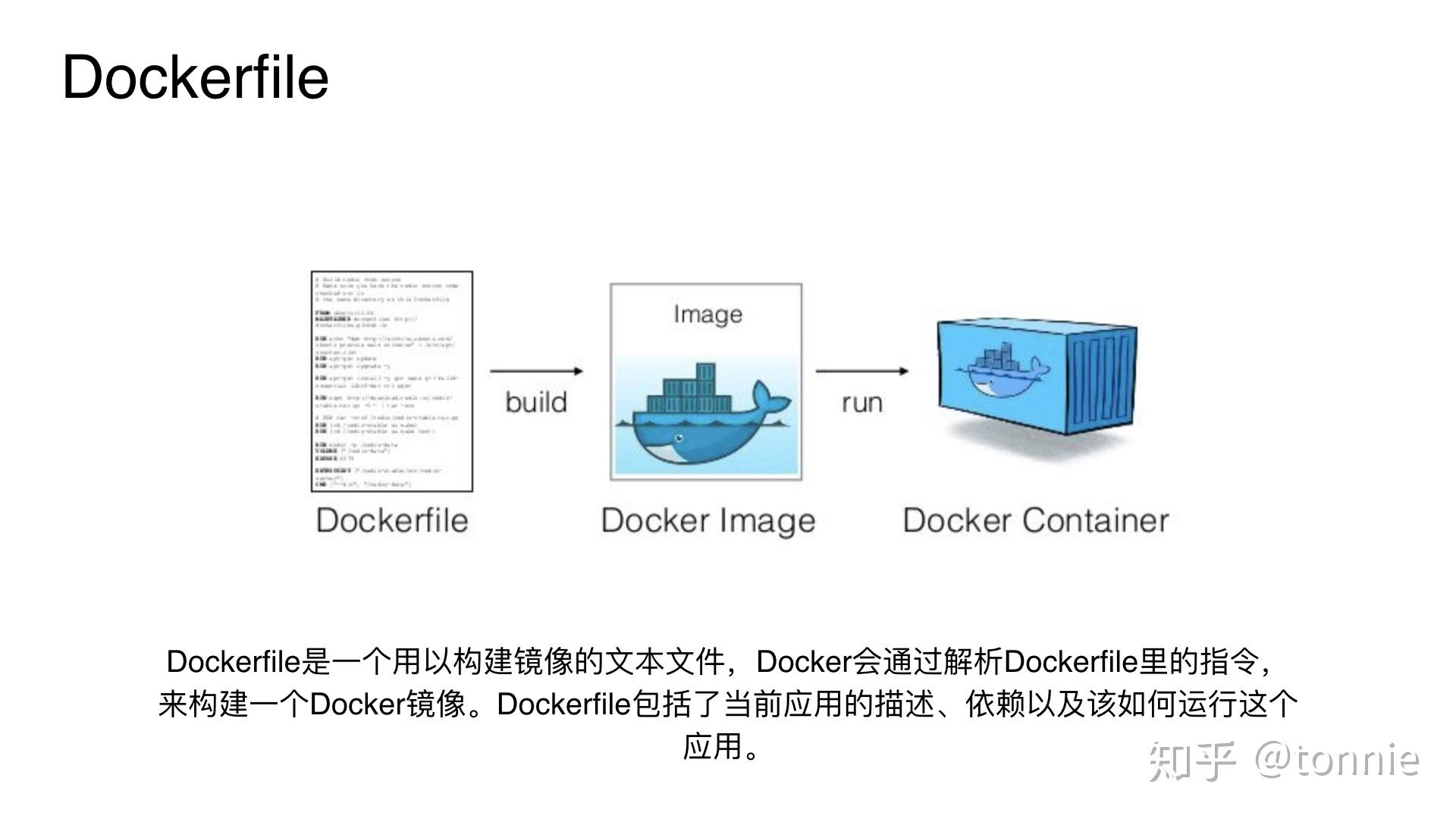 Dockerfile是一个用以构建镜像的文本文件,它包括了一系列的执行用来表示当前应用的描述、依赖以及该如何运行这个应用,Docker Engine通过解析Dockerfile里的指令,来构建一个Docker镜像。