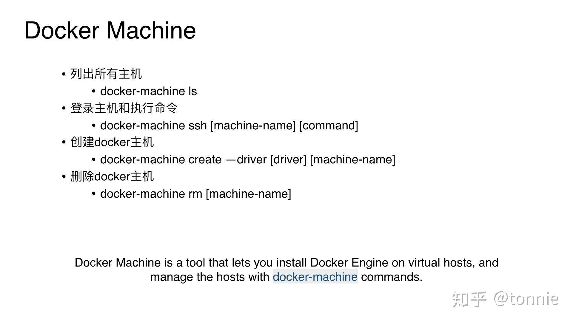 Docker Machine是一个用来在虚拟机安装Docker Engine的工具,以及通过命令行来管理和登录这些主机。
