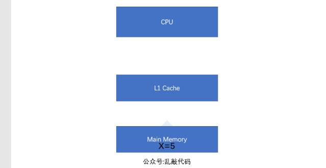 所以这个时候就出现了高速缓存(Cache)来解决这个问题,那么缓存是什么呢?缓存其实就是保存的数据备存,特点是快。所以这个时候程序的执行过程就变成了这个样子:首先在运行的时候会把数据从主存中赋值一份放在缓存中,然后CPU在运算的时候就直接去缓存中读写数据,等执行结束后在把数据刷新到主存中。这样一来就大大的提高了执行的速度。我们来看一下流程图: