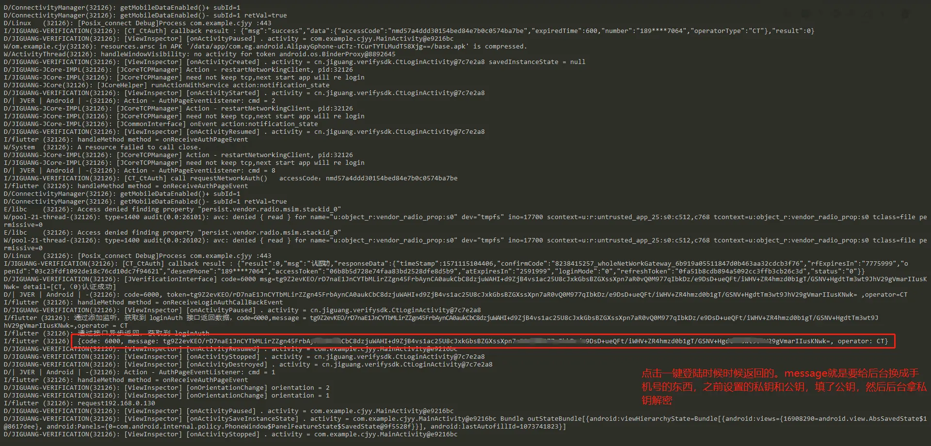 只有根据上面的获取到了phone的密文才能解析,直接解析loginToken(就是flutter获取到的token),是不行滴,这个要注意,我卡这里好久了QAQ