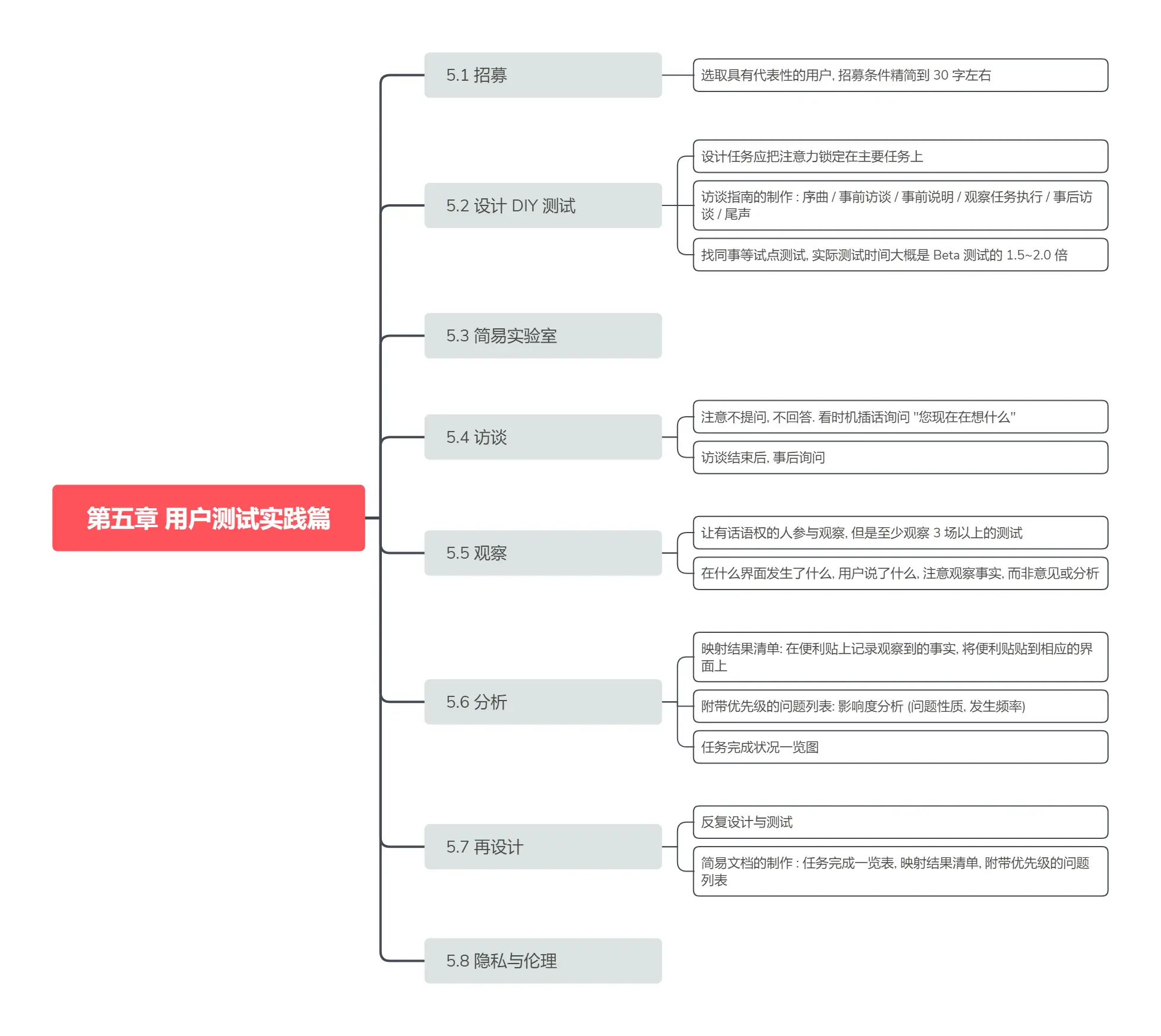 - 不要去验证你的假设 (不要问: 如果有 XX 功能的话你觉得怎么样. 这样收集到的是用户意见, 而不是用户体验)
