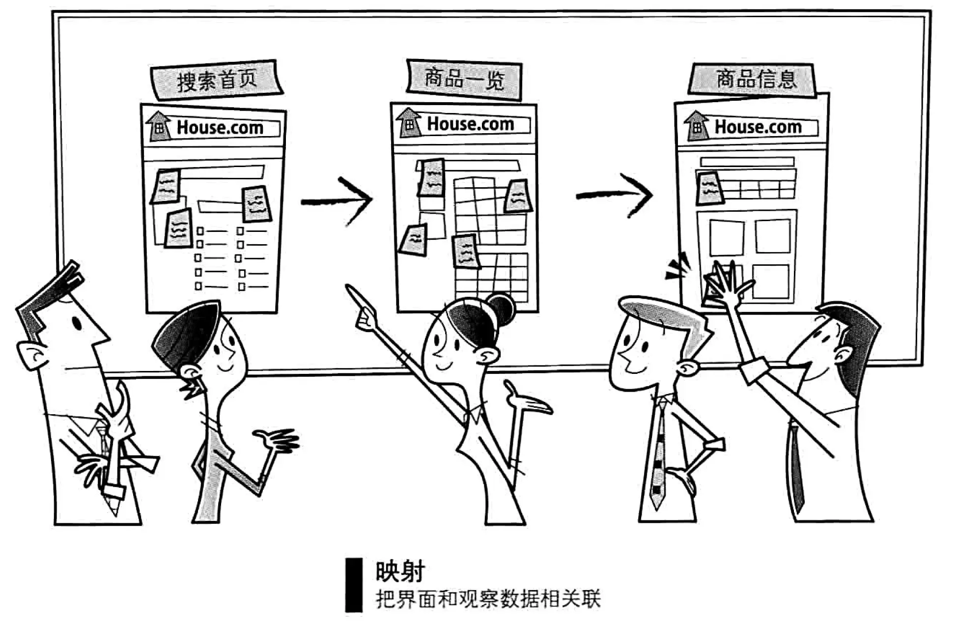 为了给改善界面, 必须先收集问题相关的数据, 再从数据中分析原因 (界面元素/界面变换/信息等), 最终才推导出解决方案. 我们要做的是摒弃用户的意见, 分析用户的行为 (FACT) , 行为数据是未经分析的新鲜数据, 设计团队要满足用户自己都没有发现的潜在需求.