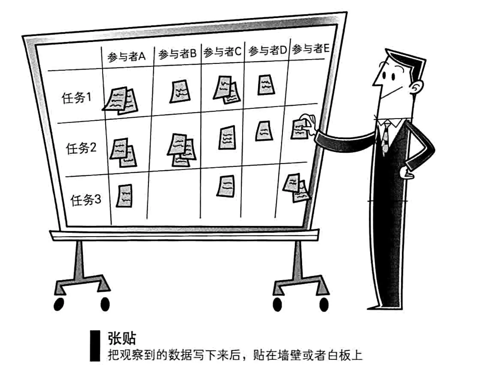 项目界面打印出来贴在墙壁上, 再把观察到的数据贴在对应的位置上