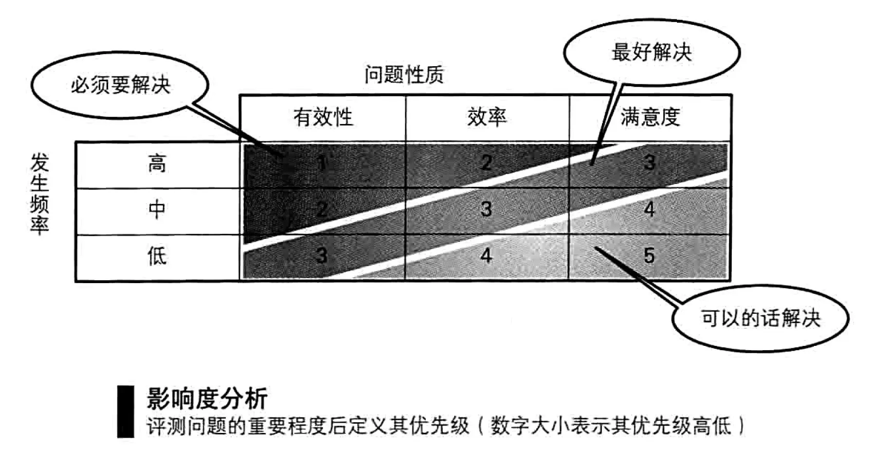 从 "效果问题 > 效率问题 > 满意度问题" 的顺序来测评问题性质