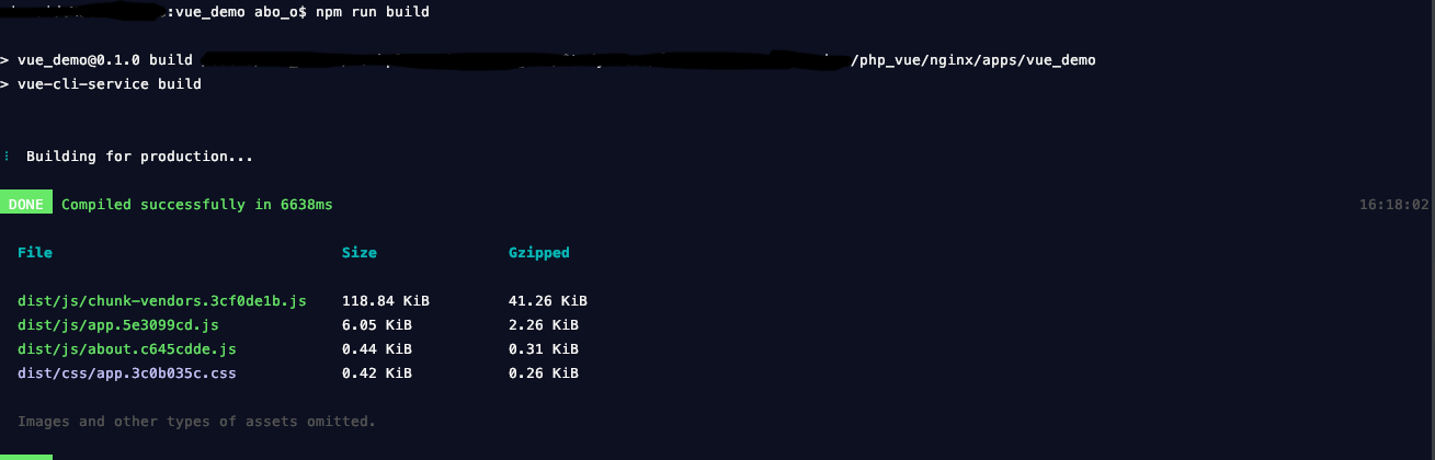 打包项目cd vue_demo && npm run build,复制 dist文件夹到 php_vue/nginx/apps下