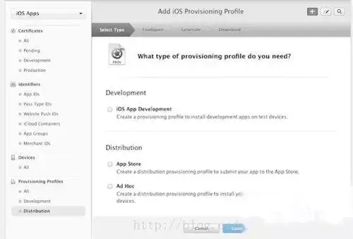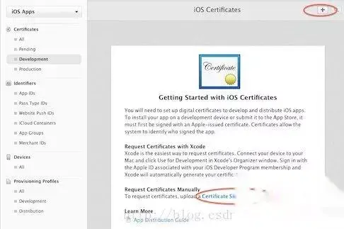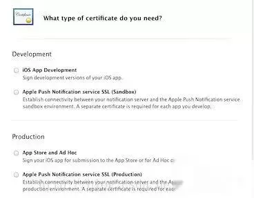 证书分成开发证书和发布证书,其中有没有推送功能又是不同的,根据实际应用的功能选择证书的种类: