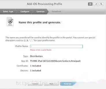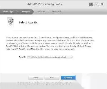 签名文件需要和一个AppID捆绑,这个根据实际情况选择,一般开发用的签名文件,会捆绑一个带通配符的AppID,这样可以在一系列的应用中通用;而发布AppStore的签名文件,必须捆绑一个不带通配符的AppID。