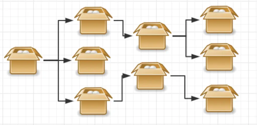 哎?这里说到一个源的概念,源简单来说就是一个专门储存包的仓库,分门别类的放好,yum命令就是仓库管家,根据配置好的规则,去源堆里找到想要的包顺便找到此包对其他包的依赖关系,根据依赖关系自动安装所有的包。包的依赖关系和下图一样。