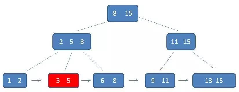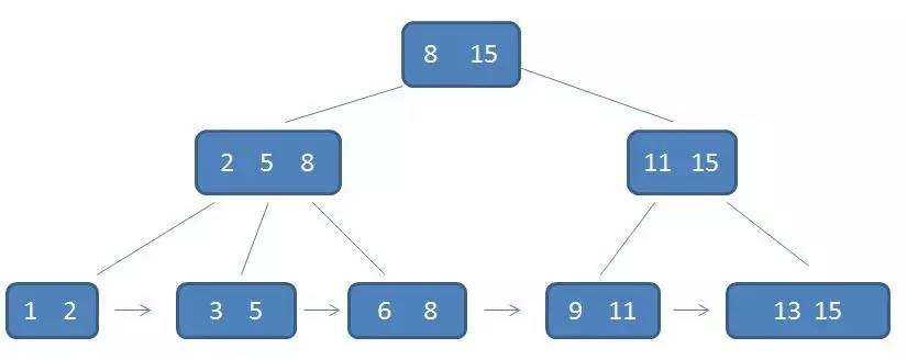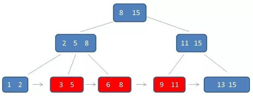 3.每一个叶子节点都包含k-1个元素,其中 m/2 <= k <= m