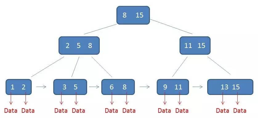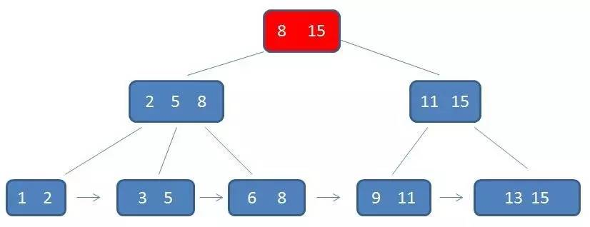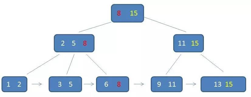 2.所有的叶子结点中包含了全部元素的信息,及指向含这些元素记录的指针,且叶子结点本身依关键字的大小自小而大顺序链接。