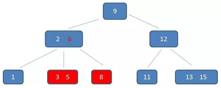 5.每个节点中的元素从小到大排列,节点当中k-1个元素正好是k个孩子包含的元素的值域分划。