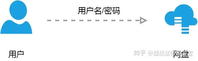 为了讨论方便,我们来设想一个场景。很多人会使用网盘来存放一些文件,像照片,文档之类。当我们存取文件的时候,我们需要给网盘提供账户密码,这样网盘服务就能验证我们的身份。这时,我们是文件资源的所有者,而网盘则扮演着资源服务器的角色。账户密码作为认证方式,保证只有我们自己可以存取自己的文件。