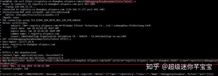 - 首先,docker 直接访问镜像manifests的地址,以便获取 Www-Authenticate 头字段。这个字段包括鉴权服务器的地址 Bearer realm,镜像服务地址 service,以及定义了镜像和操作的 scope。