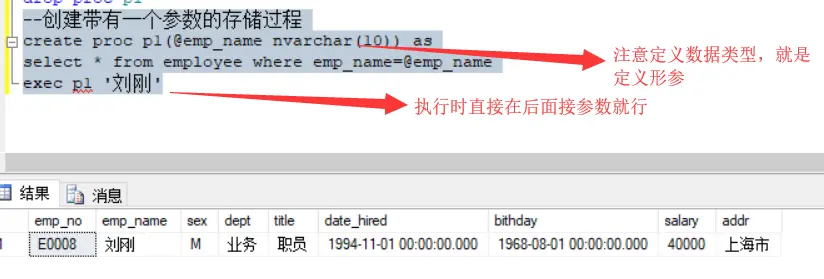 创建带有参数的存储过程