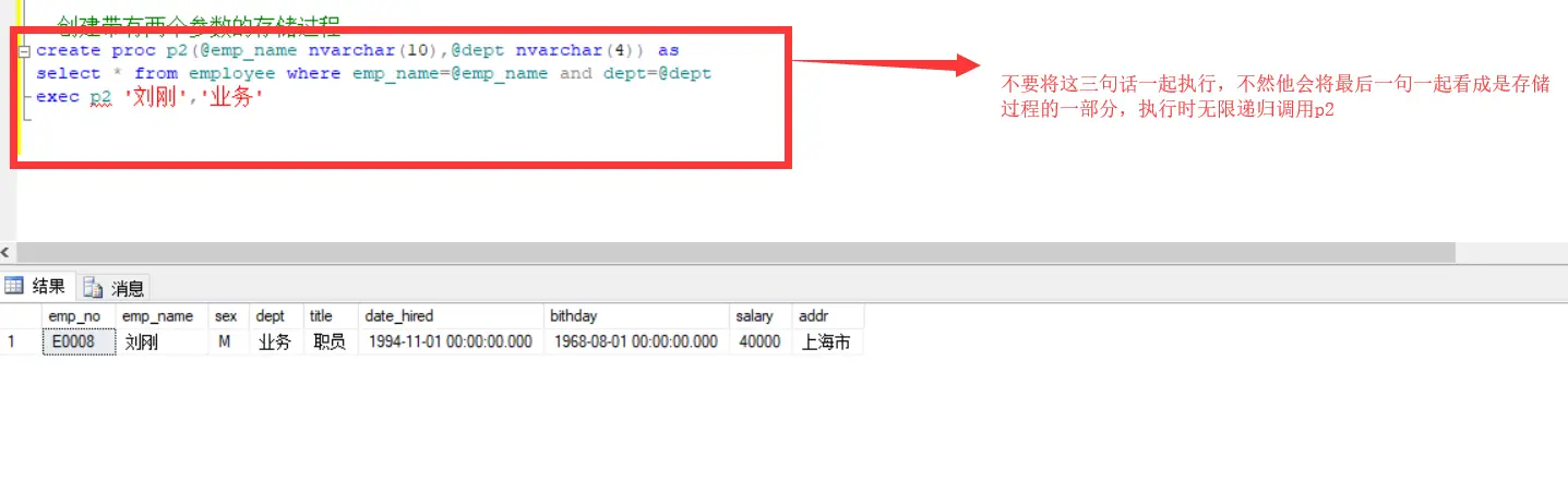 创建带有两个参数的存储过程