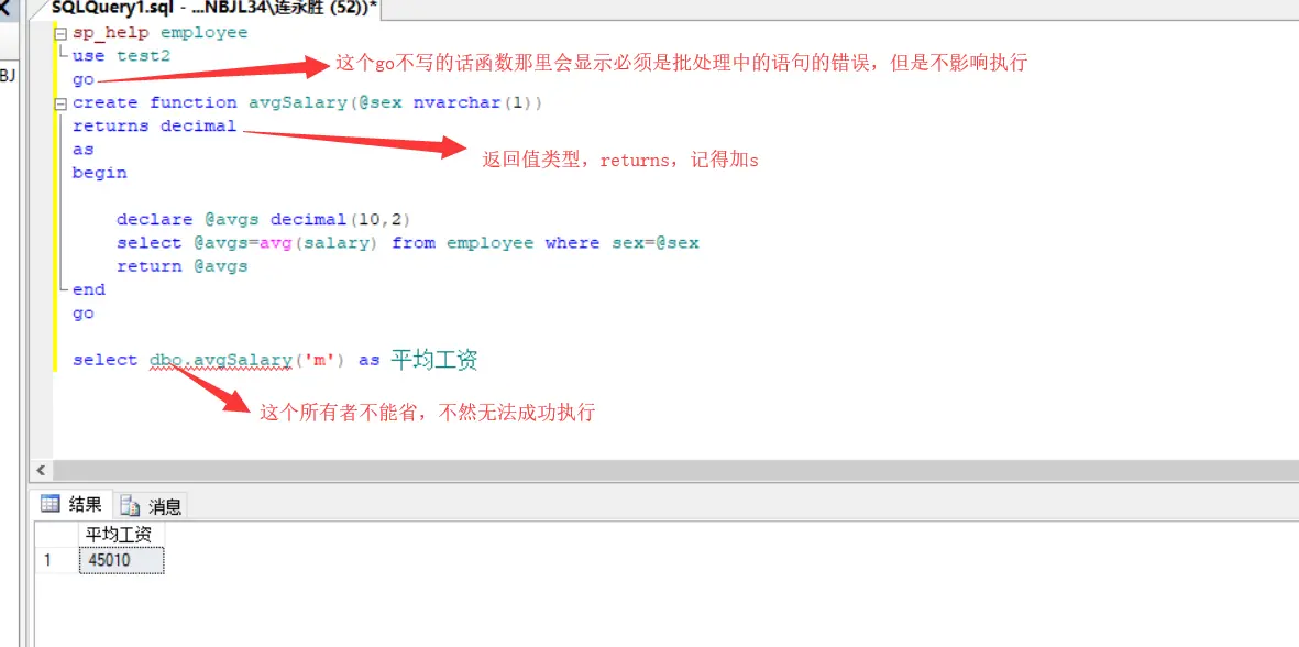 create function avgSalary(@sex nvarchar(1))