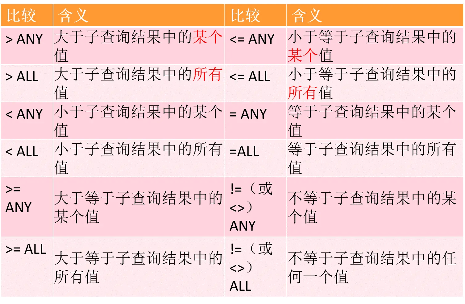 带有ANY(SOME)或ALL谓词的子查询