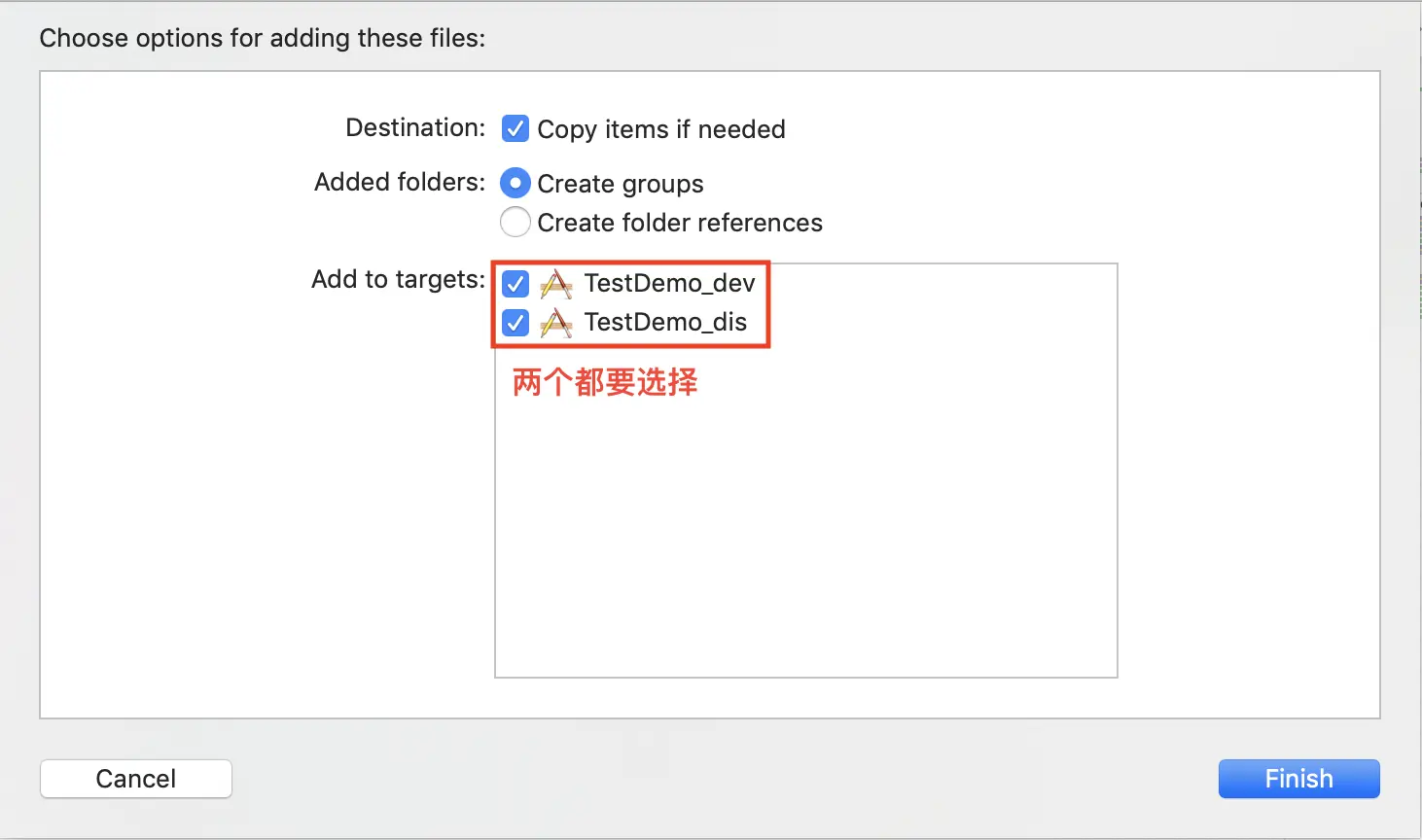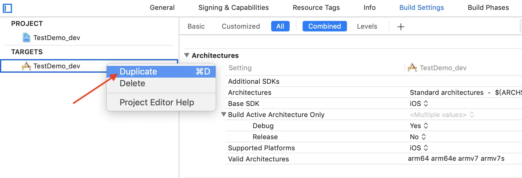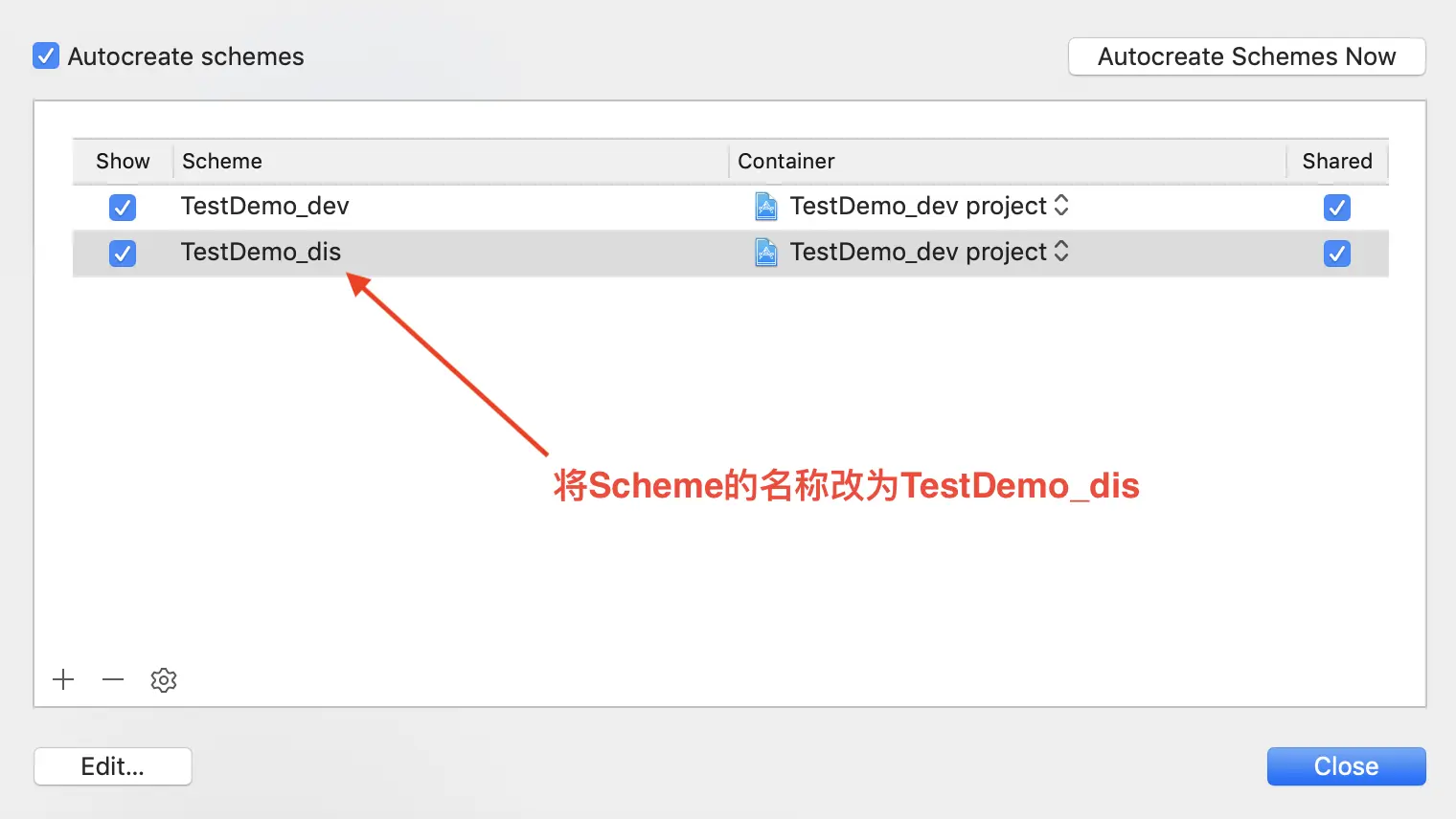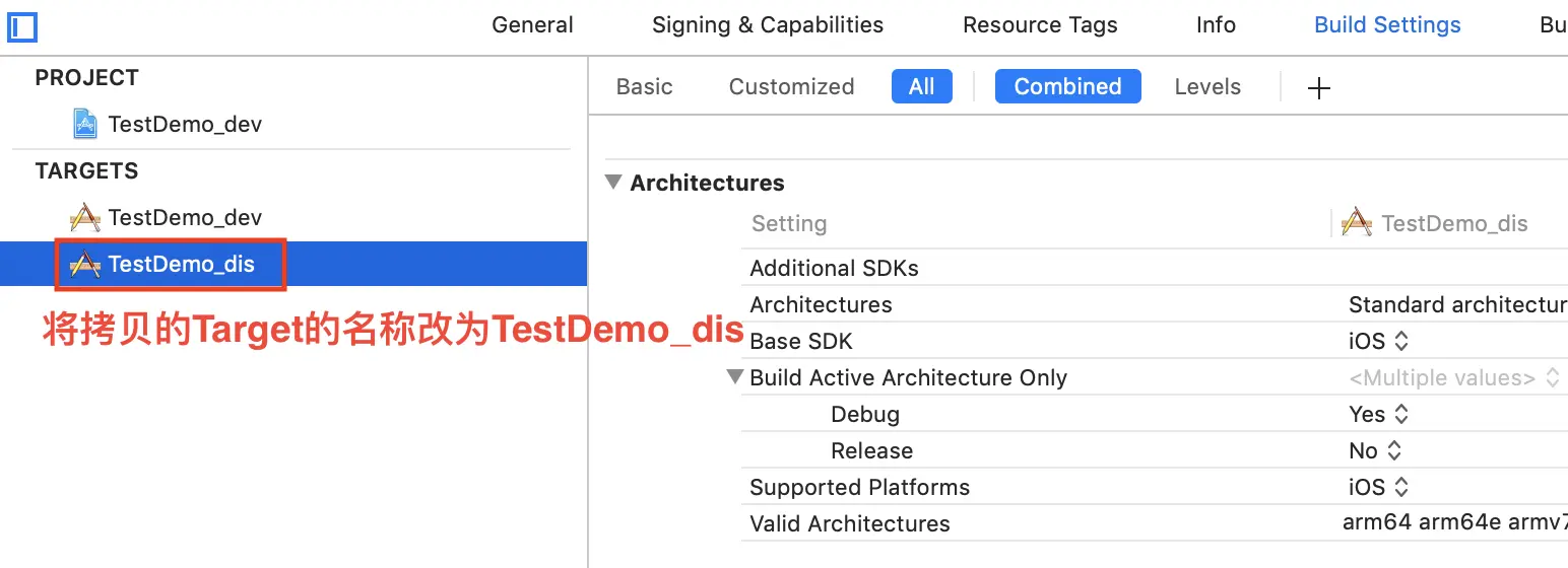 拷贝结束之后, 将拷贝的Target的名称改为“TestDemo_dis”