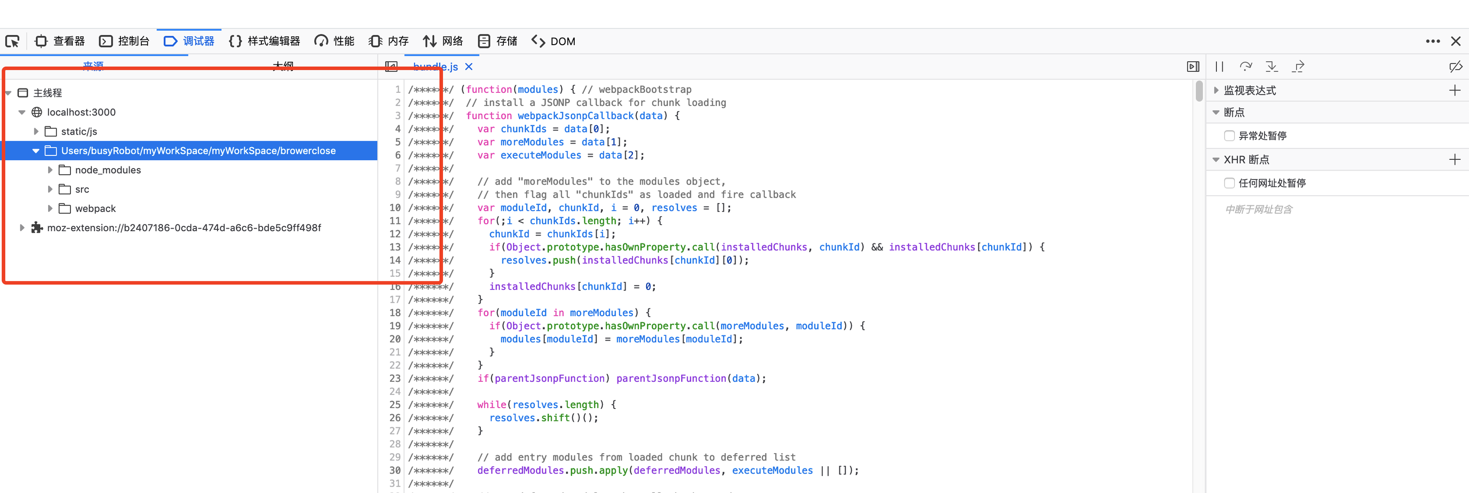 由于测试人员提出了一个bug,在chrome下正常,在火狐下不正常(即在火狐下的兼容性问题),需要在火狐浏览器下调试webpack打包后的代码;