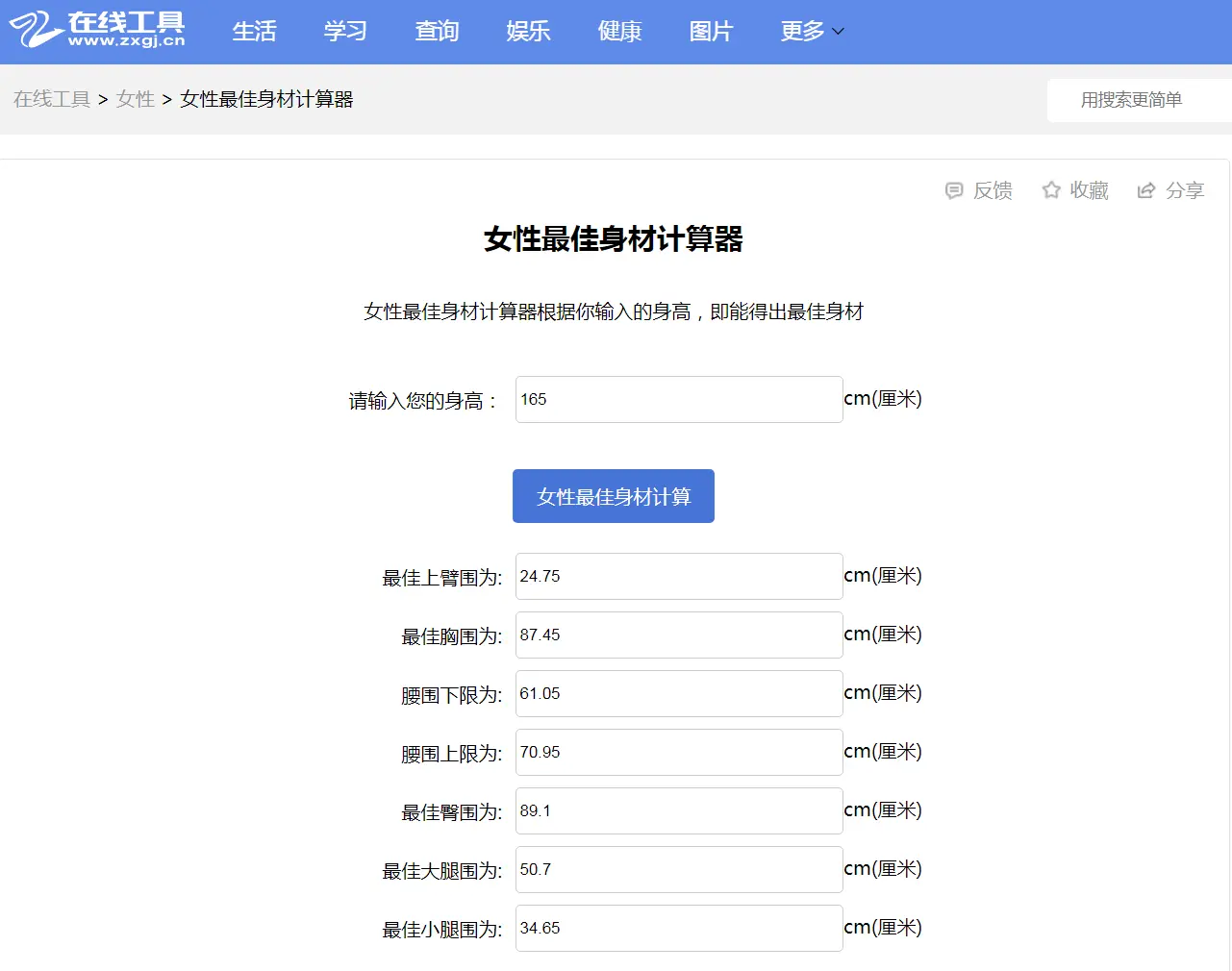 女性最佳身材计算器 - 在线工具网 - 工作生活好帮手