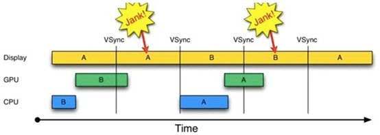 但如果CPU/GPU的FPS小于Display的FPS,情况又不同了,将会发生如下图的情况: