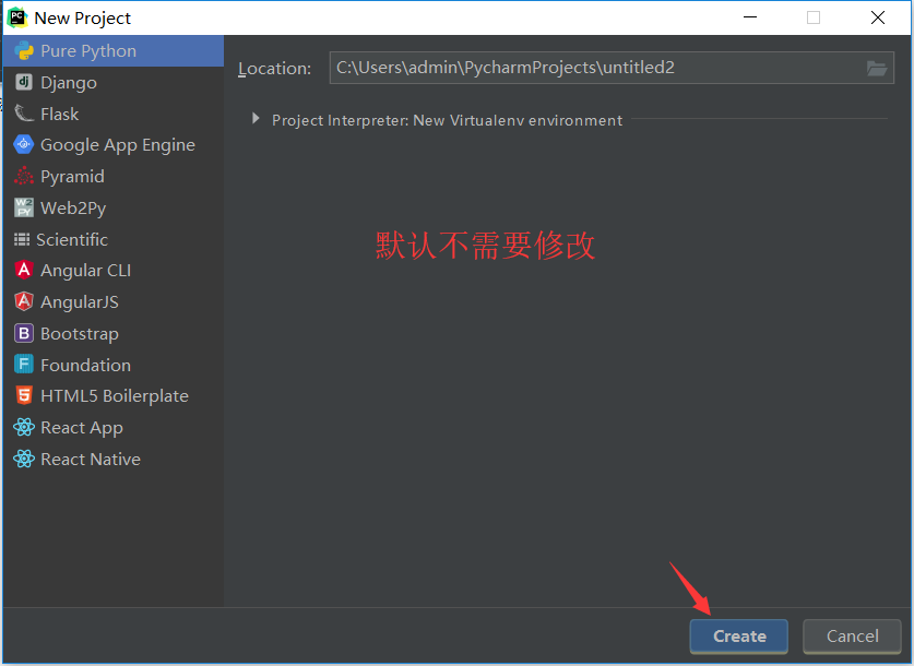 如果你之前已经使用有效期激活过可跳过此步骤,如果你是刚下载的pycharm,则需要点击激活窗口的“Evaluate for free”免费试用,然后再创建一个空项目,这样就可以进入到pycharm的工作页面