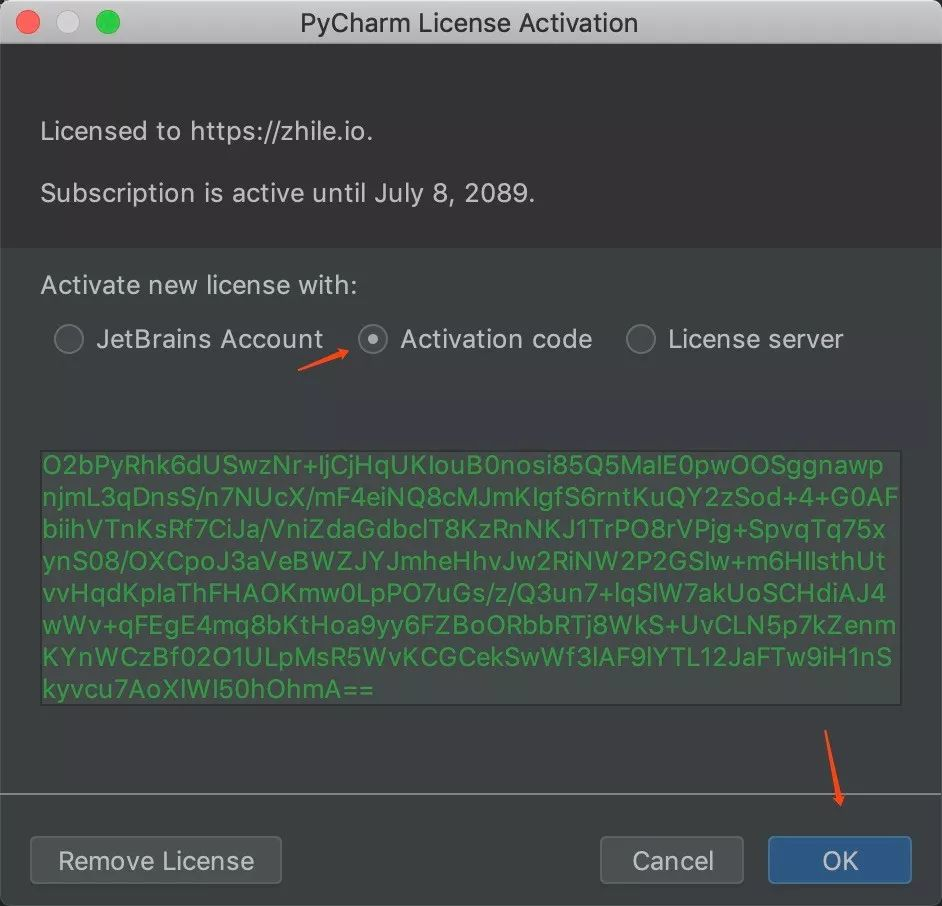 如果服务器激活方式无法激活,还可以选择Activation code方式激活,复制下面激活码即可