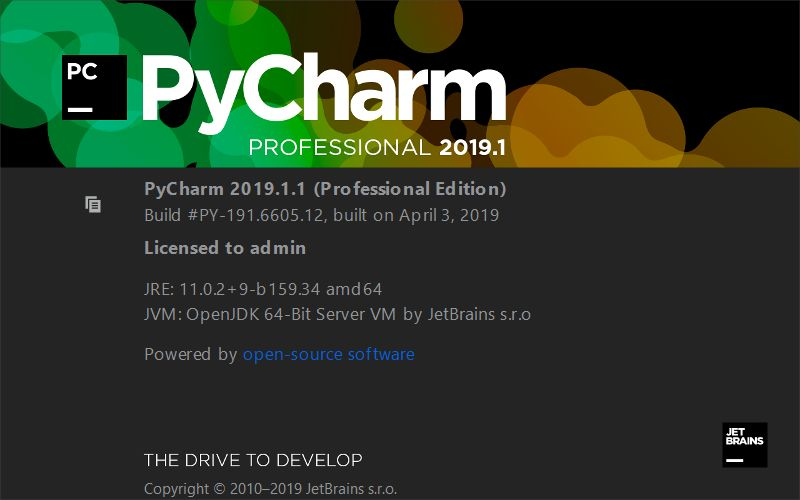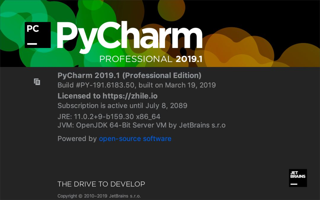 查看有效期的步骤为点击:Help->About这里可以看到你的pycharm的版本号、许可来源、有效期、以及一些环境