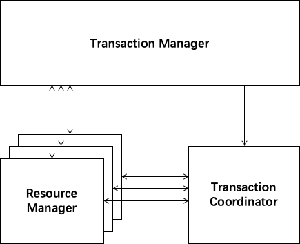 TM(Transaction Manager):全局事务管理器,控制全局事务边界,负责全局事务开启、全局提交、全局回滚。