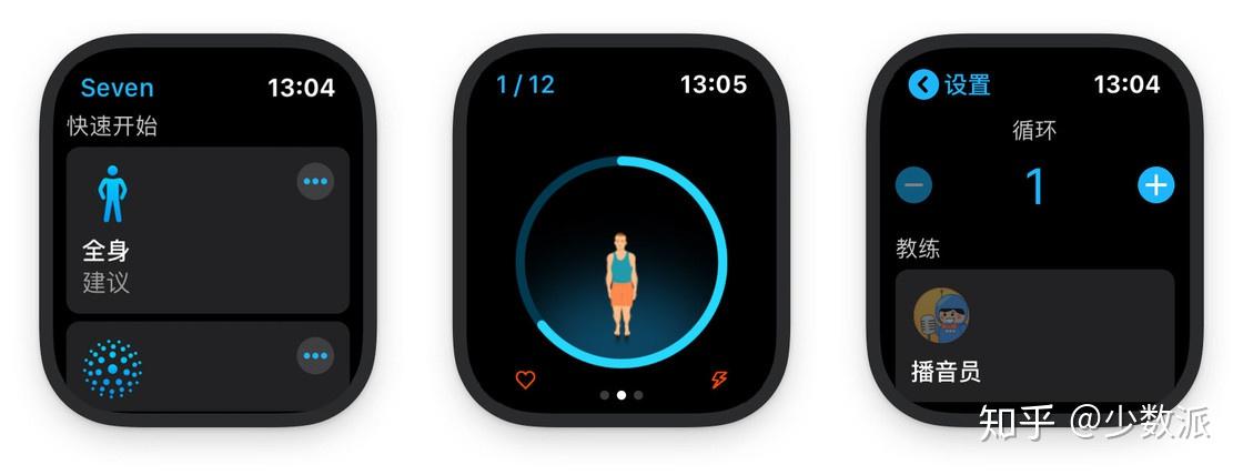 Seven 是一款「7 分钟锻炼」应用,通过在 7 分钟(每个循环)内完成开合跳、俯卧撑、蹲起等一系列动作达到快速锻炼的目的。Seven 的 watchOS 版本不算是一款完全独立的 App,手机端提供的内购和动作定制功能都无法在手表上完成,但对于已经解锁的锻炼就可以单用手表进行,可以直接在手表上看到接下来要做的动作,运动中不需要拿起手机查看。