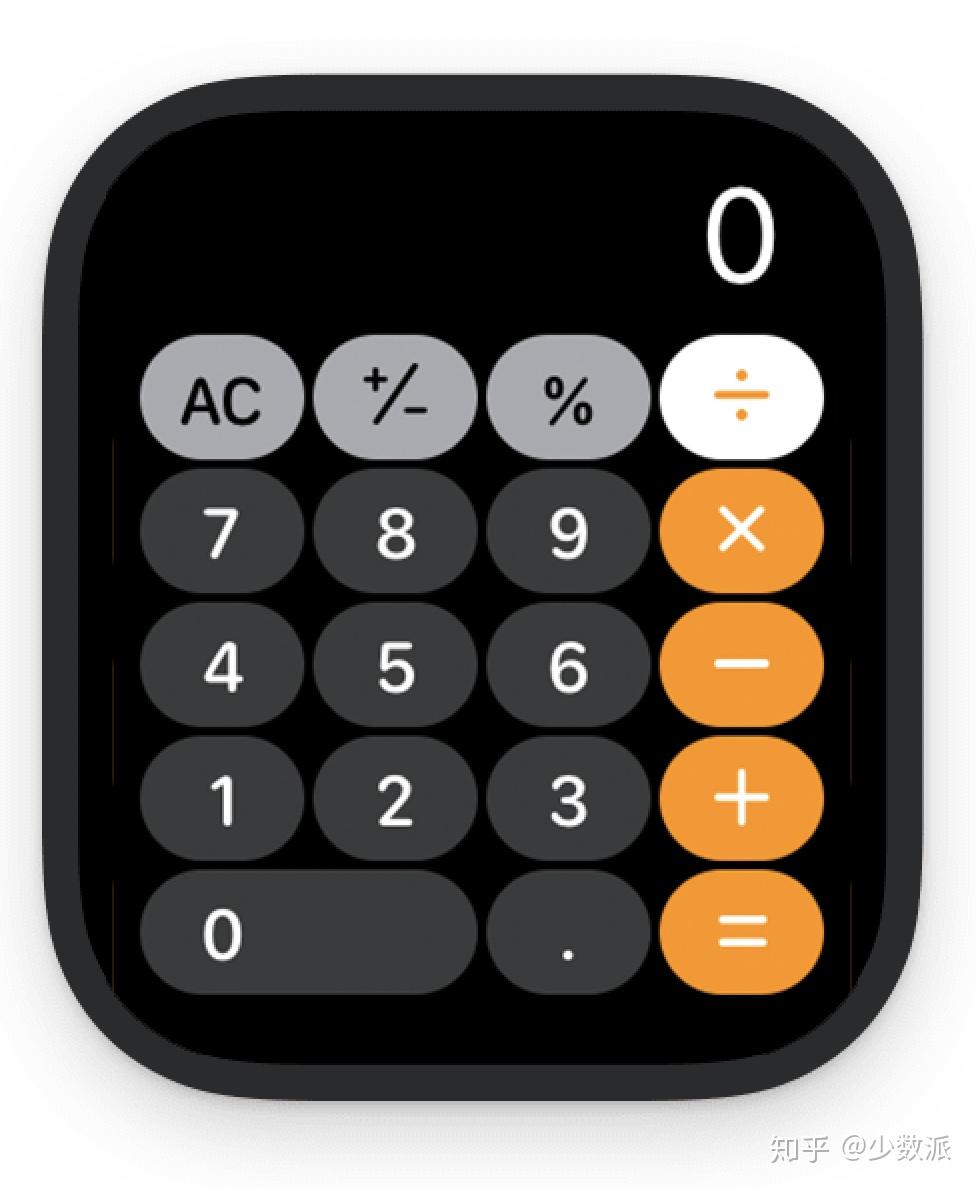 相比直接将数字和运算符号按键全部平铺在界面中的方案,PCalc 将运算符号放进了数字按键的二级按键里,长按可以选择运算符,这样设计的好处是按键很好按,不会有误触的情况。