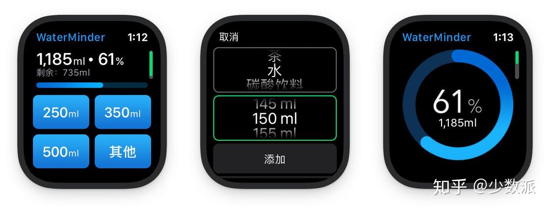 作为一款多次被 App Store 推荐的喝水提醒 App,WaterMinder 在 watchOS 6 上线后第一时间推出了更新,并支持了独立 App。现在,你只需要在手表上安装应用,就能进行饮水记录,通过 iCloud 同步数据,在手机上的健康 app 里进行展示。