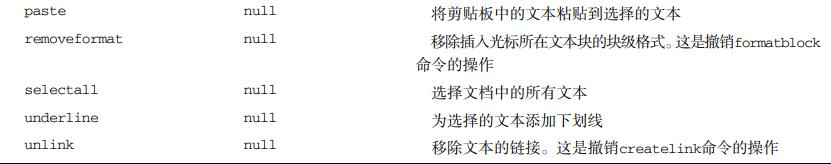 - deleteFromDocument():从文档中删除选区中的文本,与document.execCommand("delete",false, null)命令的结果相同。