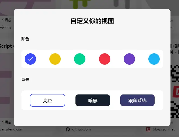 提供了 6 种主题颜色可以任意选择,支持暗黑模式和跟随系统功能