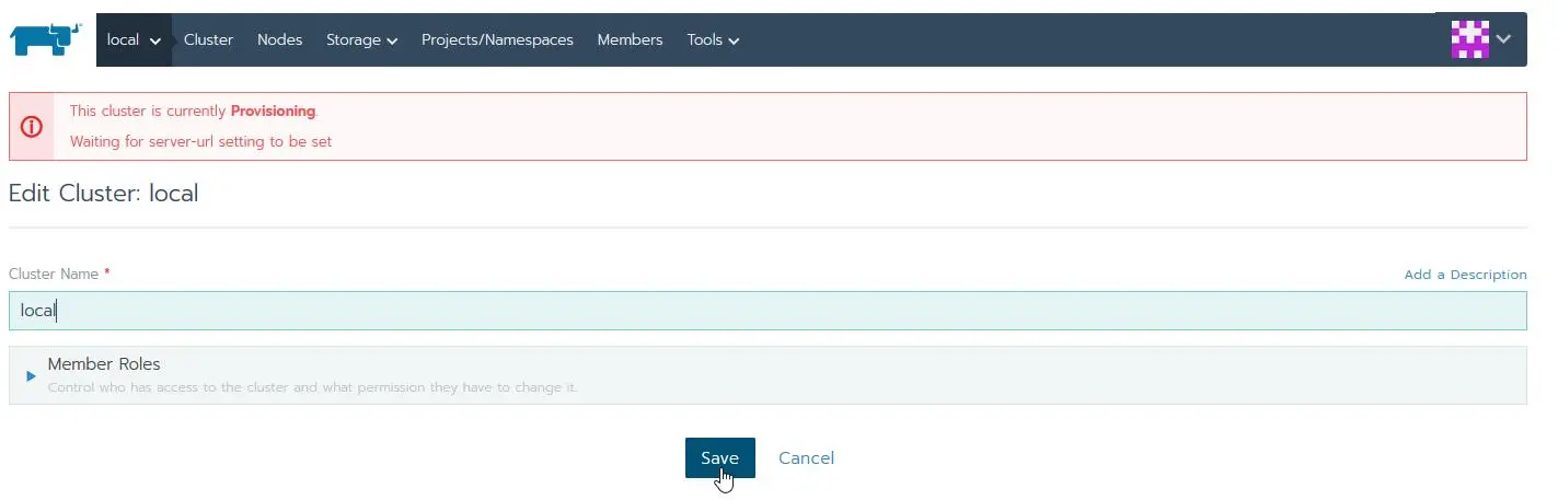 首先,你可能已经注意到你的“local”集群卡在Provisioning的状态,正在等待设置主机名。通常这几分钟之后就会自动解决,但在本例中,则需要执行几个简单的步骤。