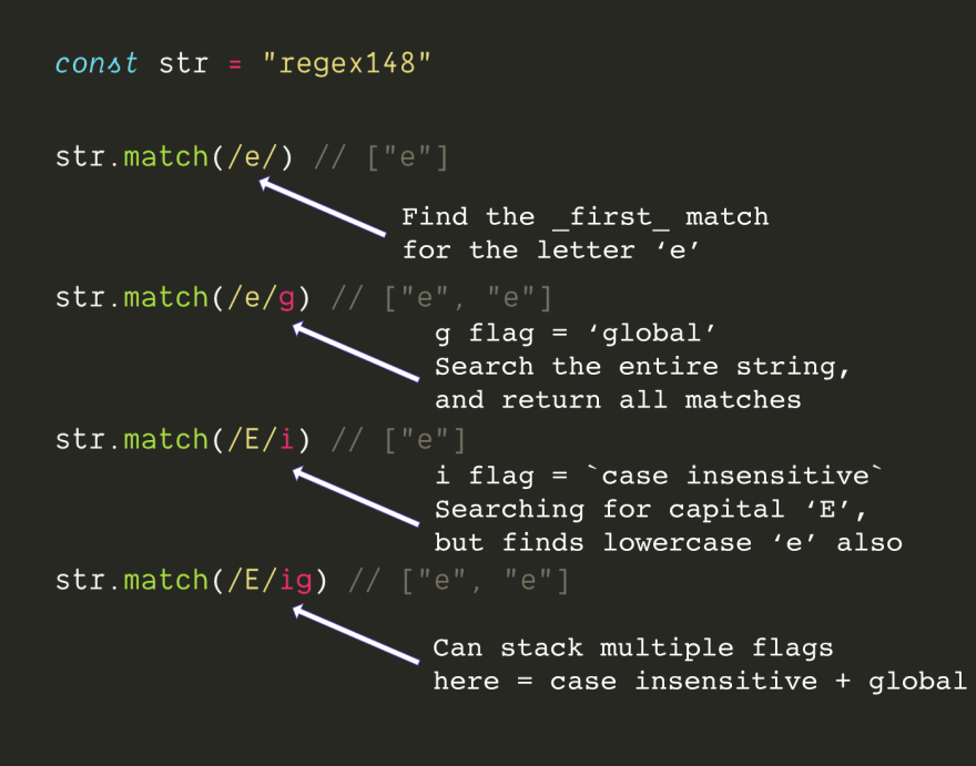 在正则表达式的末尾添加可选标志,以修改匹配器的工作方式。