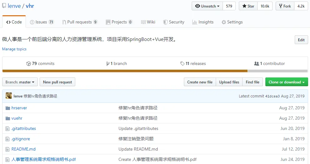 看了下,微人事(github.com/lenve/vhr)项目 star 数超 10k 啦,松哥第一个 star 数过万的开源项目就这样诞生了。