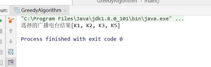 使用贪婪算法,效率高: 目前并没有算法可以快速计算得到准备的值, 使用贪婪算法,则可以得到非常接近的解,并且效率高。选择策略上,因为需要覆盖全部地区的最小集合: 遍历所有的广播电台, 找到一个覆盖了最多未覆盖的地区的电台(此电台可能包含一些已覆盖的地区,但没有关系) 将这个电台加入到一个集合中(比如ArrayList), 想办法把该电台覆盖的地区在下次比较时去掉。 重复第1步直到覆盖了全部的地区