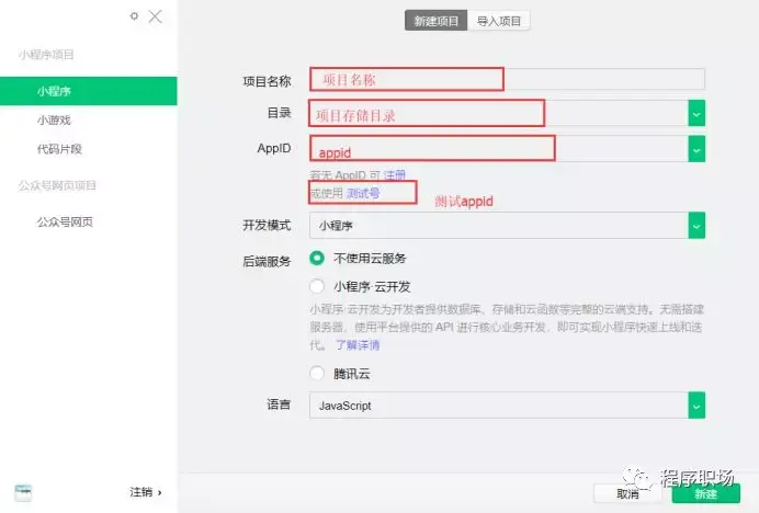 如果没有自己的小程序账号 可以使用测试appid做临时开发使用